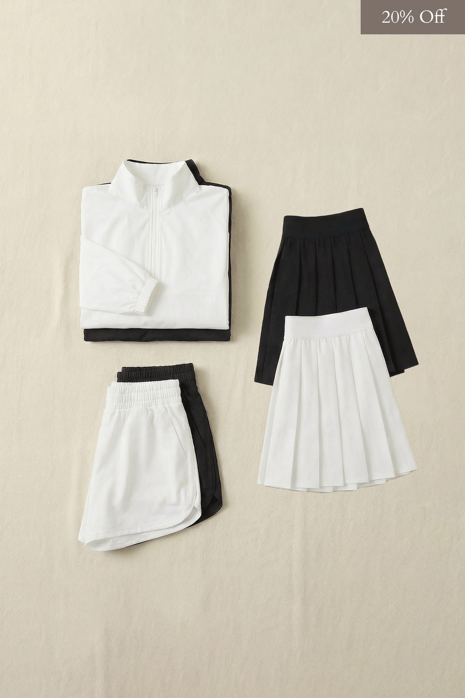 Command your style on and off the court. The ANCHOR Set redefines sport-infused sophistication with a trio built for dynamic movement and sharp silhouettes. Featuring the versatile ANCHOR Court Jacket, matching ANCHOR Court Shorts, and the effortlessly chic FREYA Skirt, this collection blends sleek, technical fabrics with modern, flattering cuts.