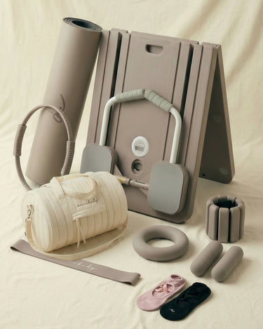 Crafted in a serene, unified taupe palette, this limited edition bundle brings together everything you need to flow, sculpt, and center. From whisper-quiet sand-filled weights to buttery-soft accessories, each piece is chosen for its feel, function, and aesthetic harmony. No clanging metal, no visual clutter. Just intentional movement and lasting results.