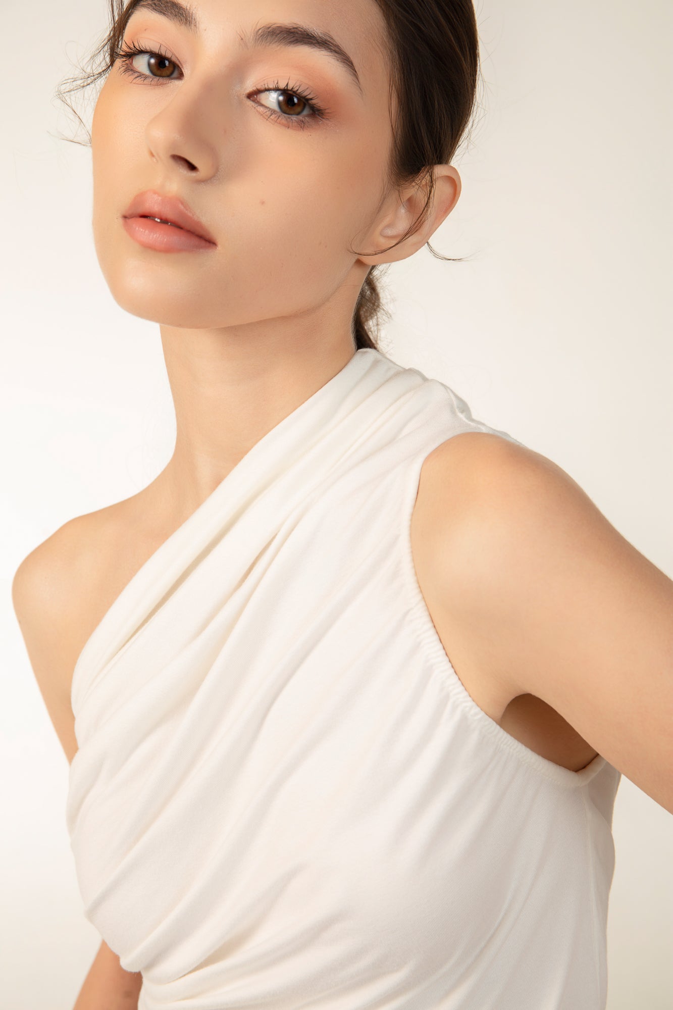 Meet the star of the GIGI Set—a curve-loving top designed to stand alone or pair perfectly. Elasticized at the waist and ruched for subtle definition, its single shoulder strap adds minimalist allure. Layer under blazers, tuck into jeans, or wear with the GIGI Skirt for full vintage-modern magic.