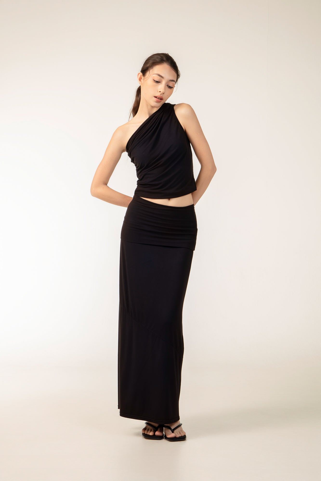 Redefine versatility. With its fold-over waist and fluid modal fabric, this skirt transforms in seconds: drape it long for elegance, fold into a ruched mini, or style as a sleek tube dress. Inner elastic ensures comfort for all heights and body types. Pairs flawlessly with the GIGI Top.