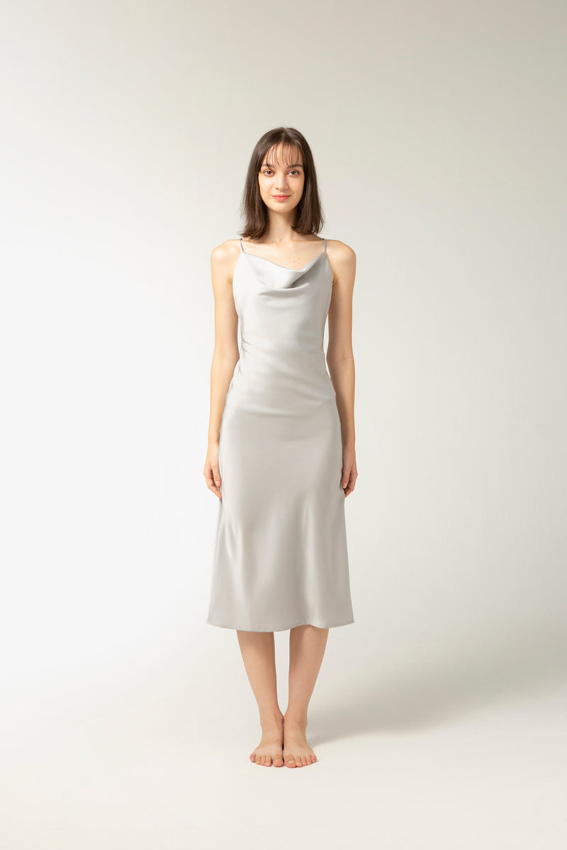 An iconic slip dress made for body lovers— it is elegant and flattering for all body shapes. A feminine silhouette to accentuate your curves with absolutely no pressure, let PAIGE float down your body naturally with its lightweight, breathable and lustrous fabric that we up-cycled to reduce waste to the environment.