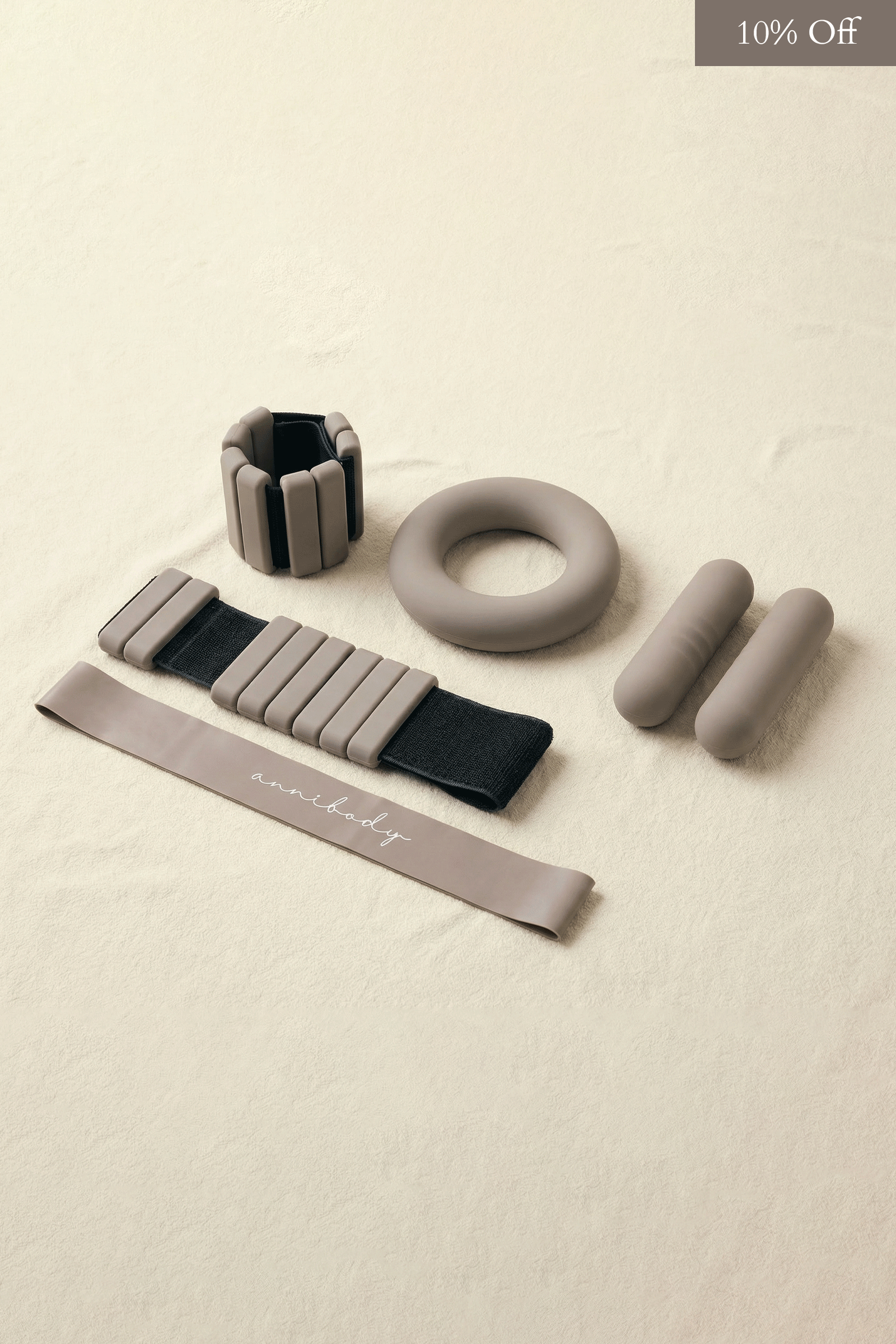 Transform any space into a serene strength sanctuary. The Earth Flow Kit merges functional elegance with whisper-quiet resistance—all unified in sophisticated taupe. Sculpt, tone, and flow with four tactile tools designed for harmonious full-body training. No clanging metal, no garish colors. Just you, your breath, and earth-toned results.