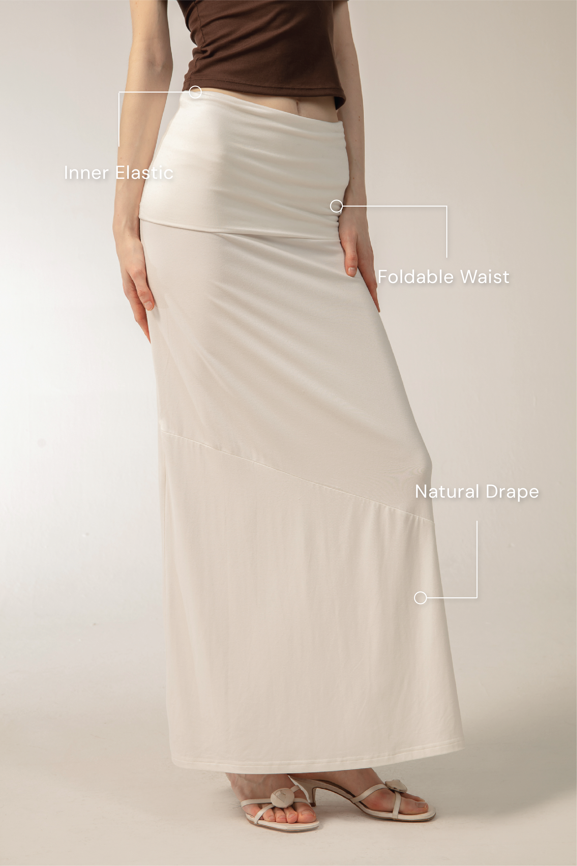 Redefine versatility. With its fold-over waist and fluid modal fabric, this skirt transforms in seconds: drape it long for elegance, fold into a ruched mini, or style as a sleek tube dress. Inner elastic ensures comfort for all heights and body types. Pairs flawlessly with the GIGI Top.