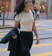 The AURA Day T-Shirt is the ultimate in understated luxury. Crafted from a weightless, breathable, and cooling fabric, this short-sleeve tee offers a body-skimming fit that feels as good off-duty as it does layered over your favorite bra top. It’s the essential piece for effortless, casual elegance.
