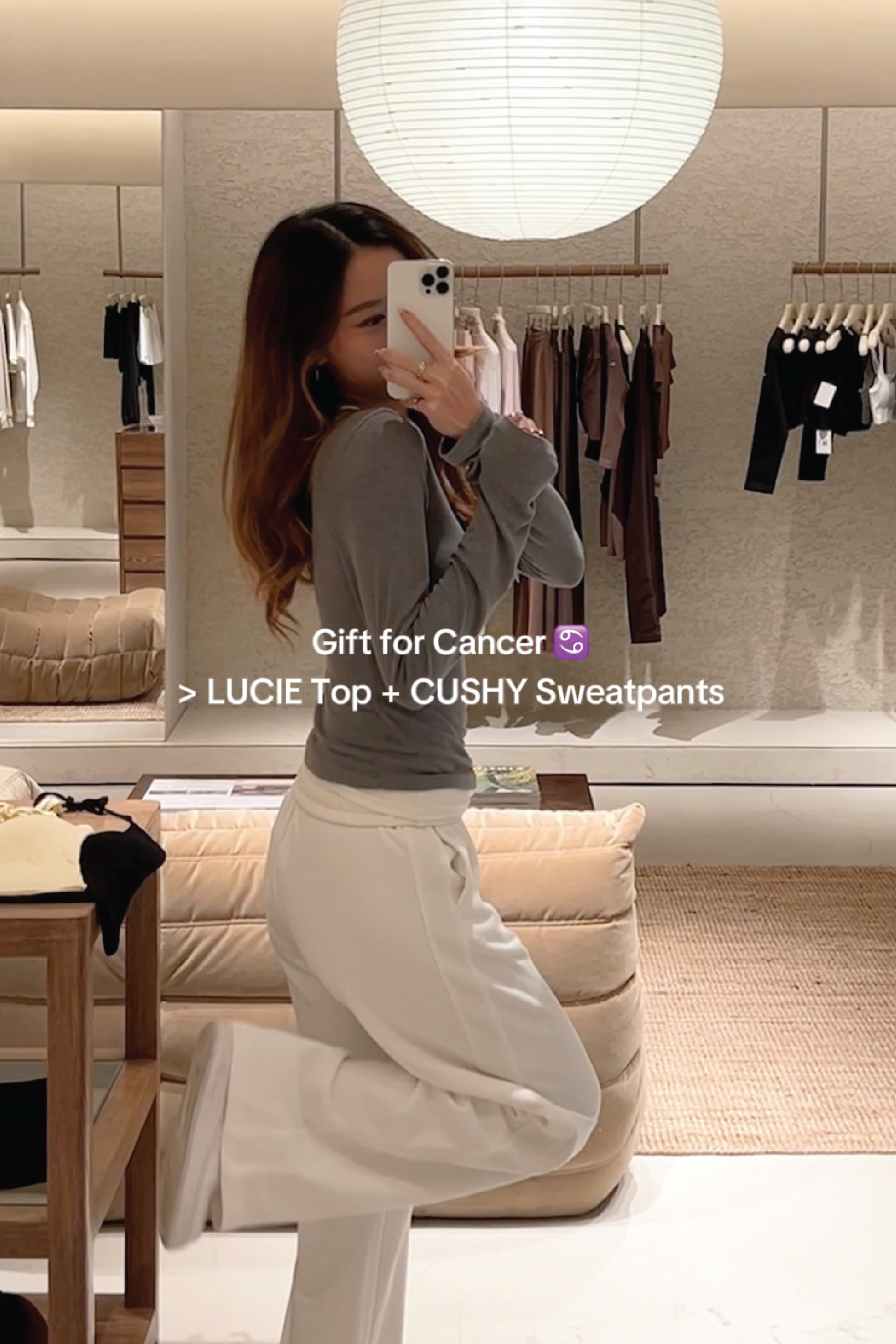 This set includes one LUCIE Top in Grey and one CUSHY Sweat pants in White.