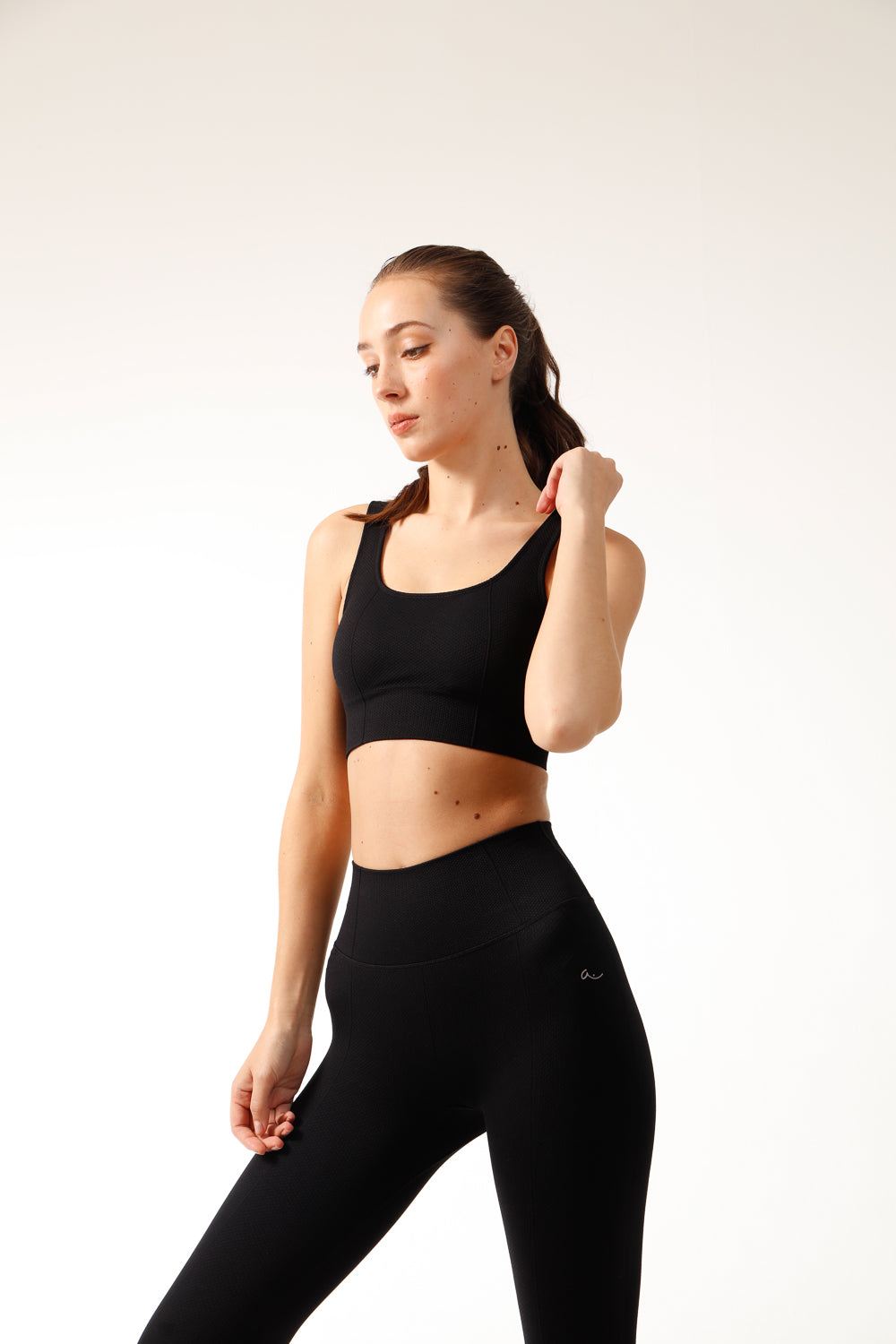 Meet the TERRA Bra: a seamless fusion of performance and minimalist design. With its sleek square neckline, architectural straps, and chic low back, this bra doesn’t just support—it elevates. Built for burpees, box jumps, and beyond, it’s engineered to flatter every curve, on every body.